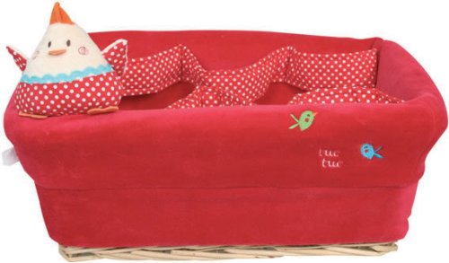 Adorable nursery basket with unique liner from Tuc Tuc. Natural wicker basket measures 30.5x22x12cm or 12"x8.6"x4,7" aprox. Luxuriously soft high-quality cotton liner with a unique European design, has 6 straps to hold your needs in place and nicely organized. (Storage for diapers, cream, bottles etc.) Little plush toy sits atop the basket, fun and colorful characters that never fail to create a warm and loving atmosphere for the child while stimulating their curiosity. Imported from Europe. Machine washable. Matching accessories from this collection are also available.Available Stores
